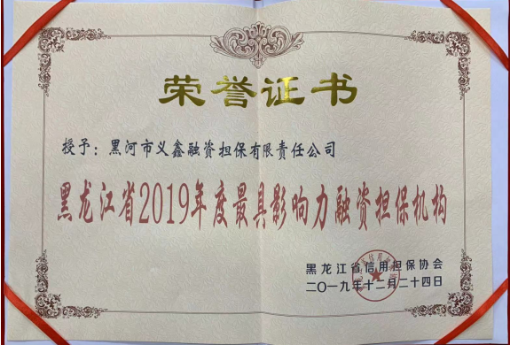 2019/12/30 義鑫擔(dān)保公司榮獲“黑龍江省2019年度最具影響